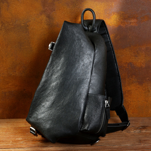 慢时光大容量男士 真皮男包潮 胸包复古头层牛皮单肩斜挎包休闲个性