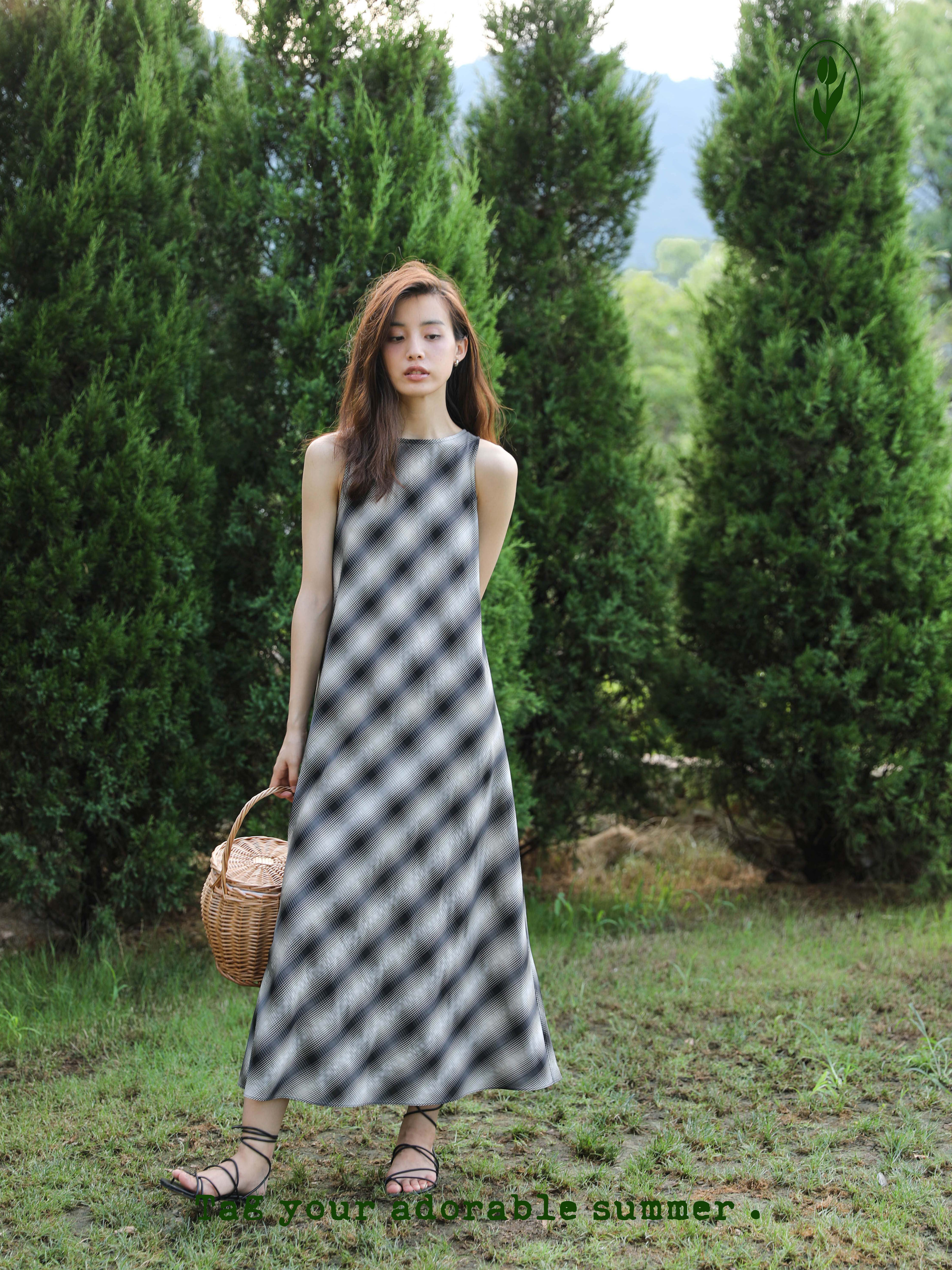 无袖 连衣裙 珍贵醋酸面料黑白格子简单经典 shyshy银河漫游