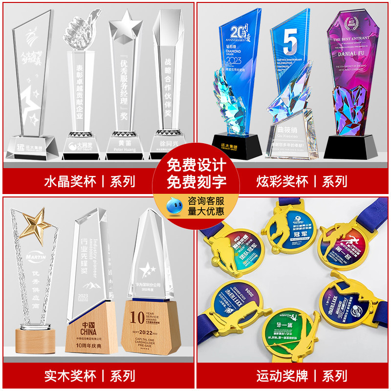 创意刻字公司颁奖奖杯奖章奖状证书定制奖牌奖杯定制奖杯水晶定制