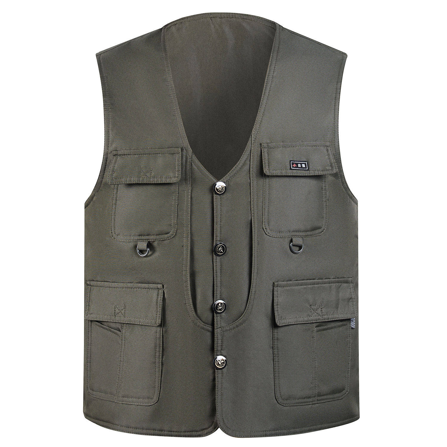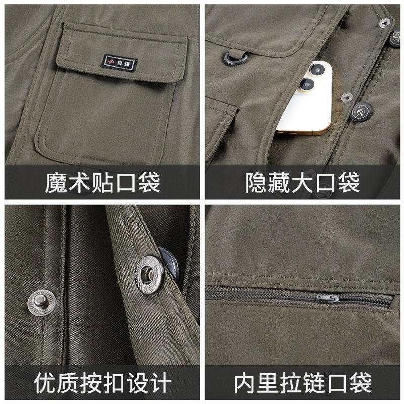 中老年春秋男式 坎肩V领多口袋户外钓鱼摄影马夹男 马甲双层按扣款