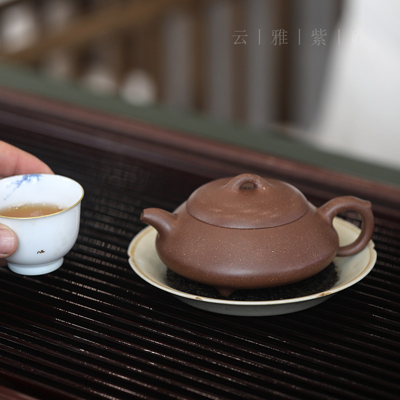 一厂老紫泥石瓢200cc 家用单壶顾杏娟茶壶 宜兴紫砂壶纯手工 云雅由