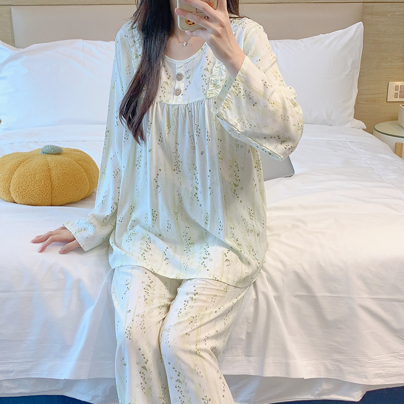 纯棉女士长袖 睡衣新款 女款 家居服秋冬全棉大码 套装 秋款 芬腾春秋季