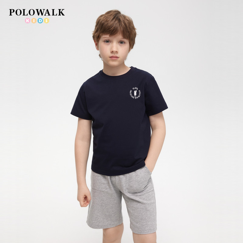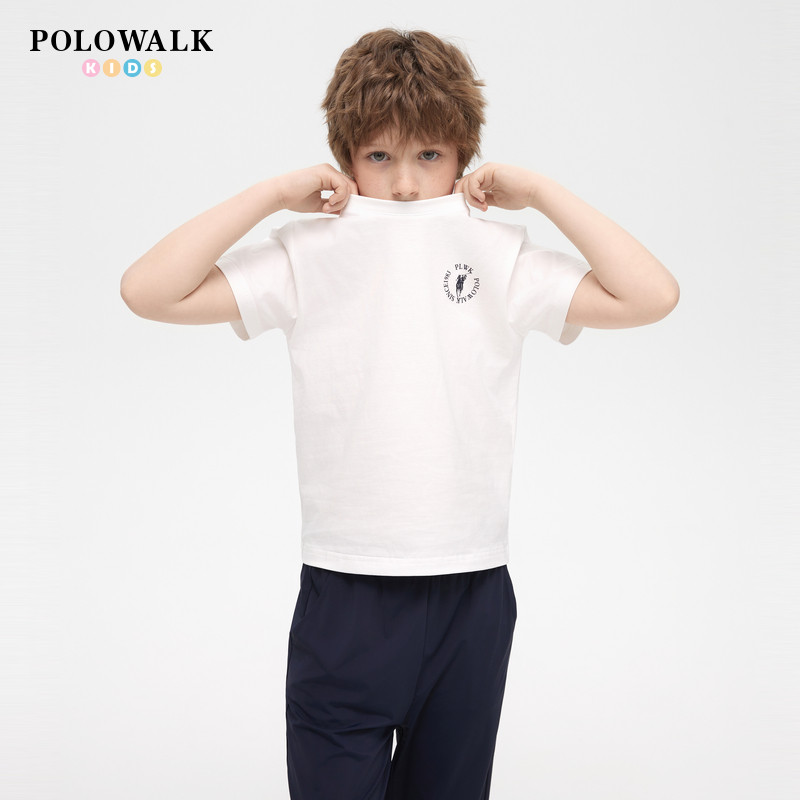 男童2026年夏季 100%棉 POLOWALK童装 圆领纯棉印花儿童T恤 新款