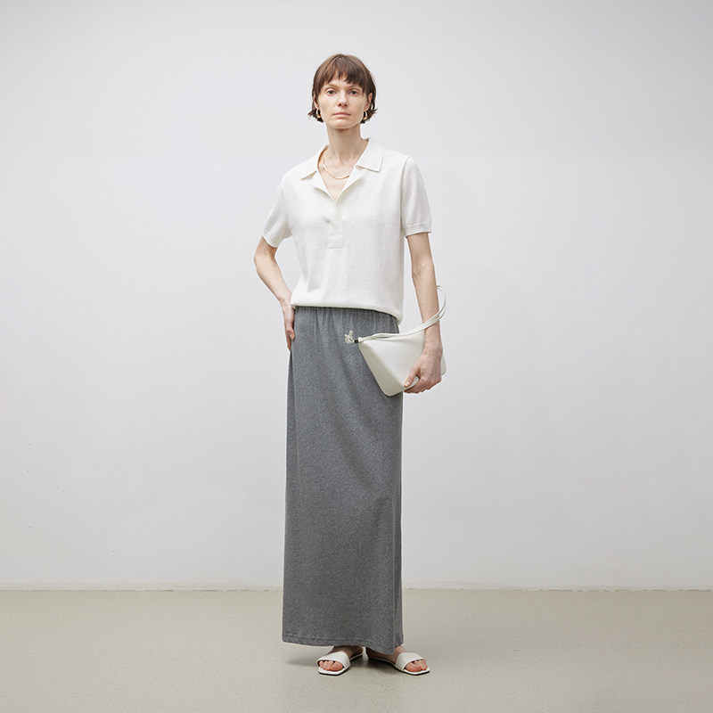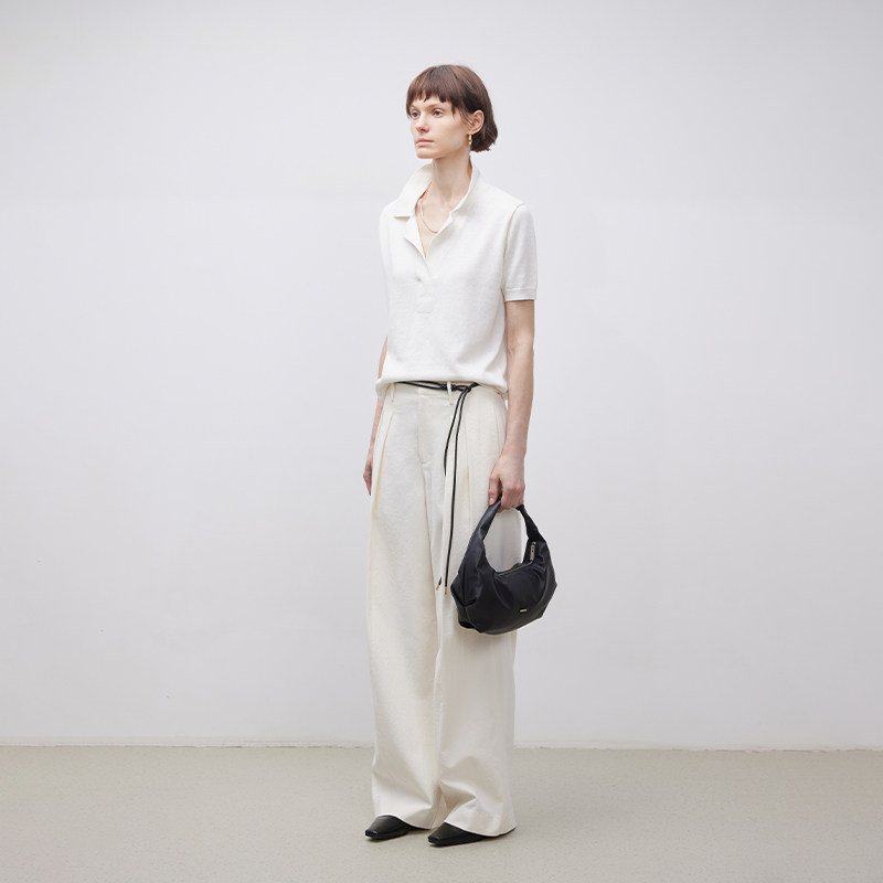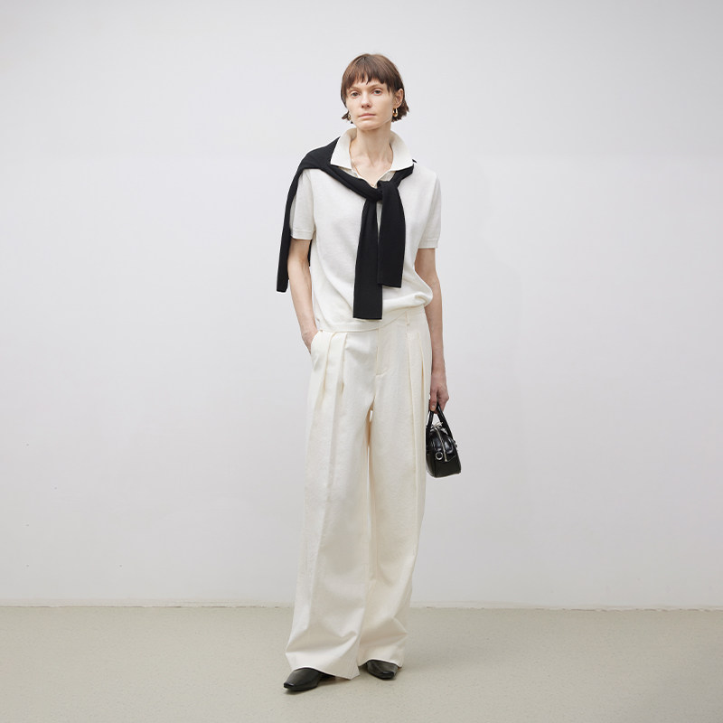 夏季 BLUEWEDIAN针织亚麻短袖 polo衫 女 宽松休闲小翻领t恤上衣 薄款