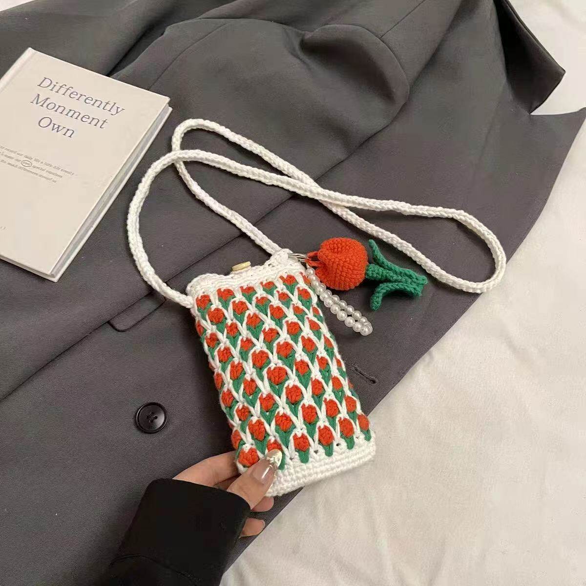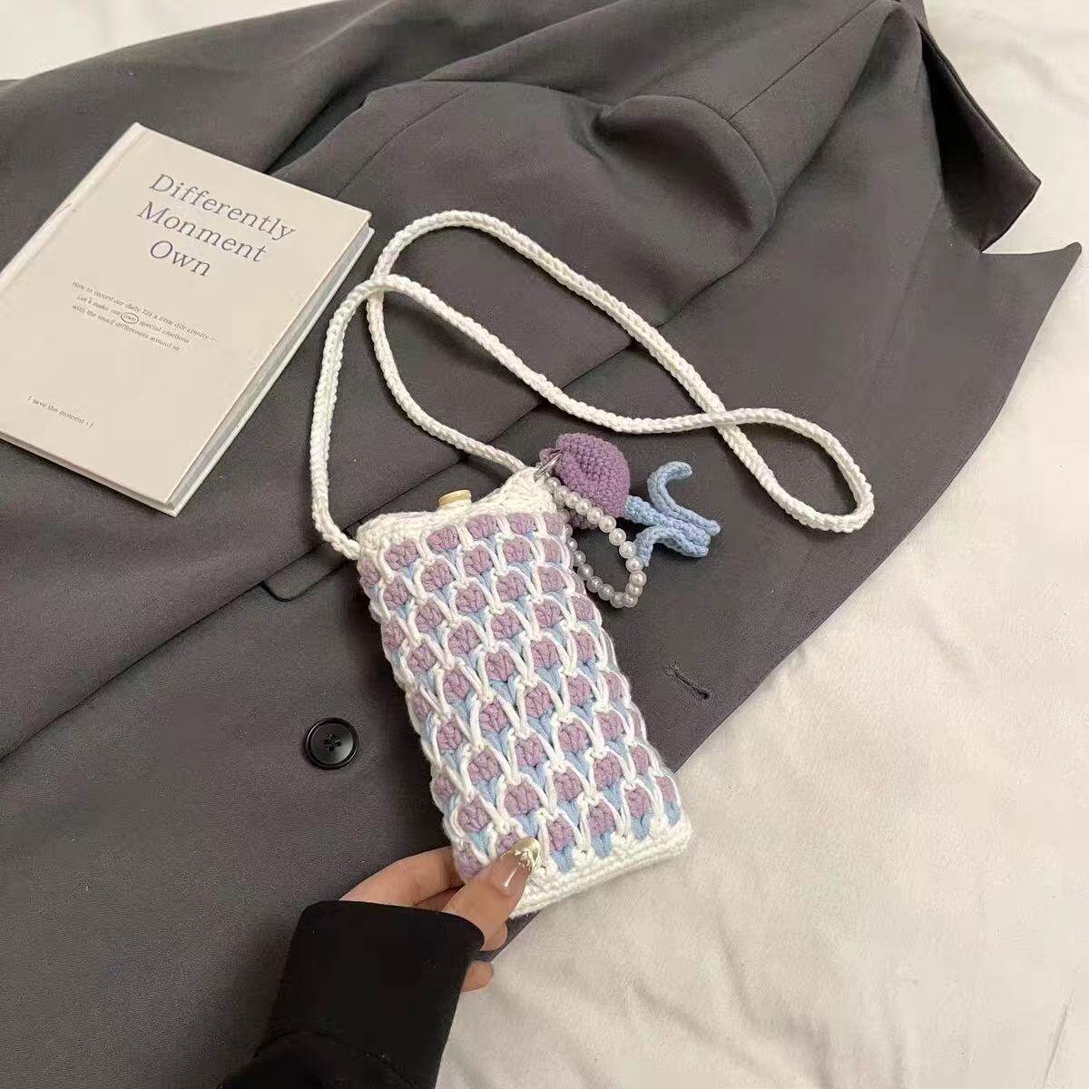 可爱针织毛线手机包 毛线钩织diy材料包郁金香斜挎小包女2025新款