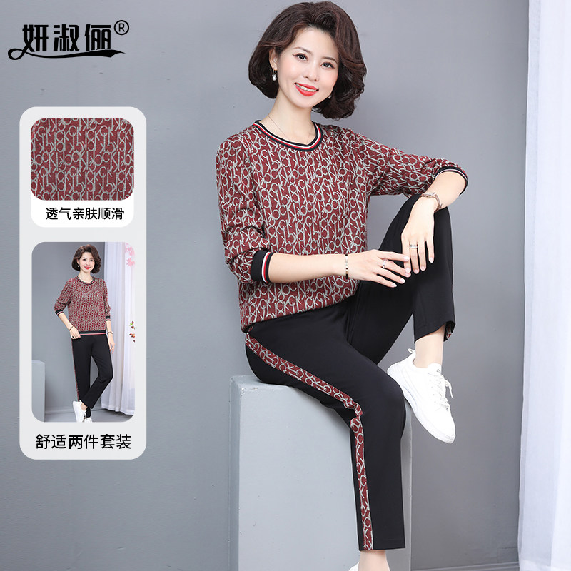 为您提供商品洋气红色上衣女士时尚 两件套 2026新款 中年妈妈春秋休闲运动服套装的详细介绍,