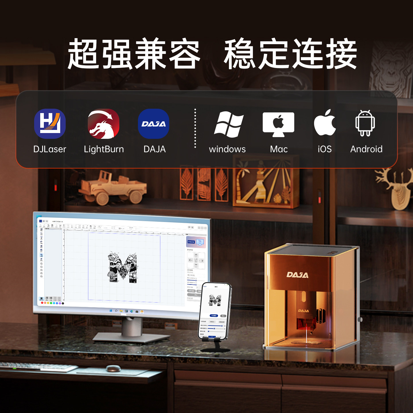 DAJA 金属刻字0.01mm精度全自动 DJ6Pro激光雕刻机家用小型便携式由