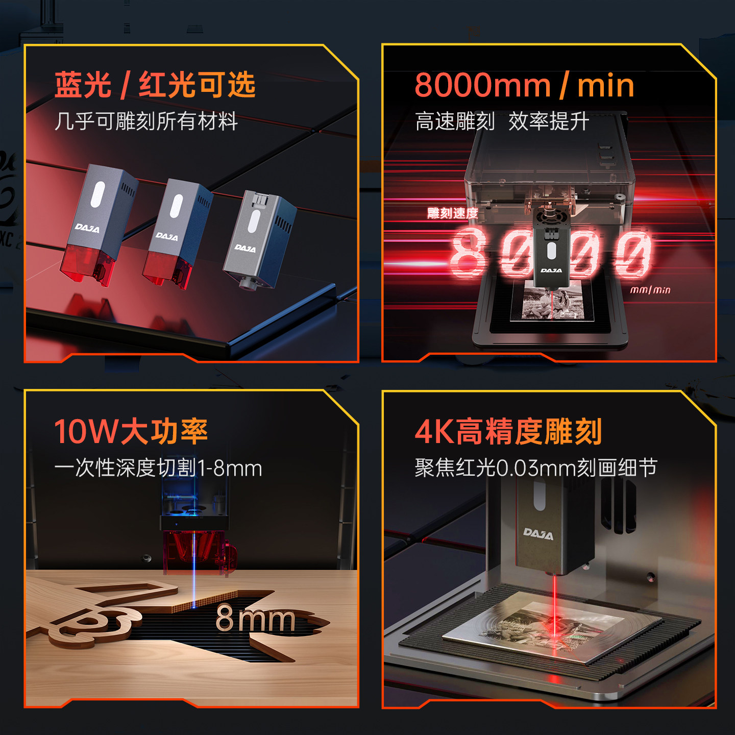 为您提供商品DAJA 金属刻字0.01mm精度全自动 DJ6Pro激光雕刻机家用小型便携式的详细介绍,