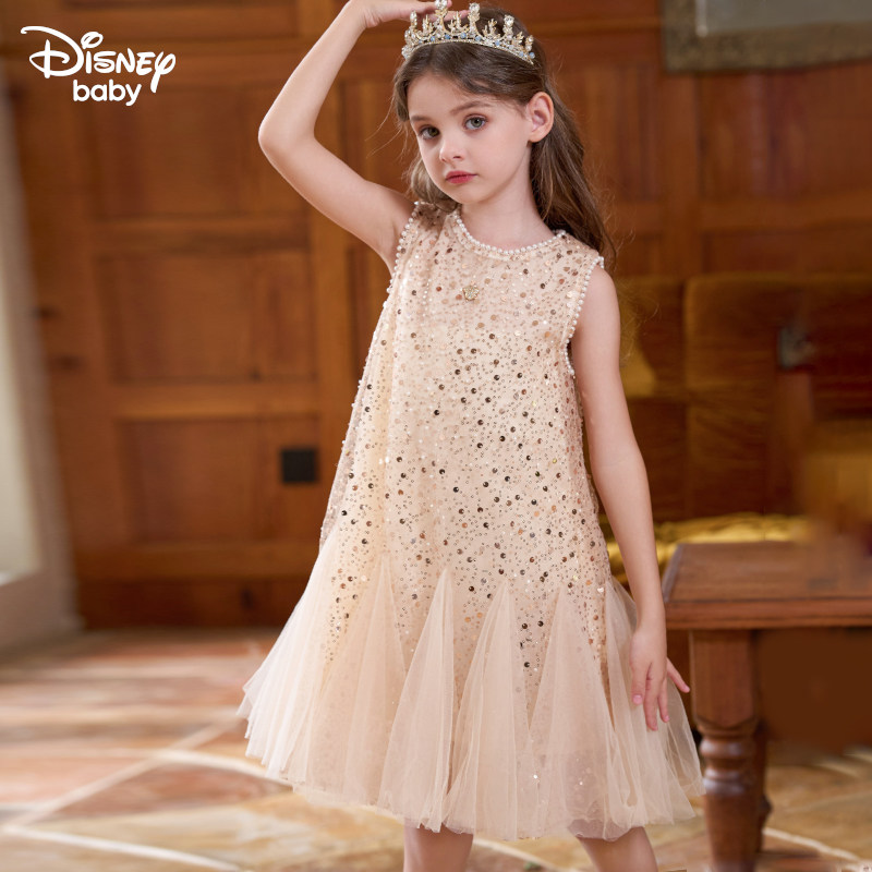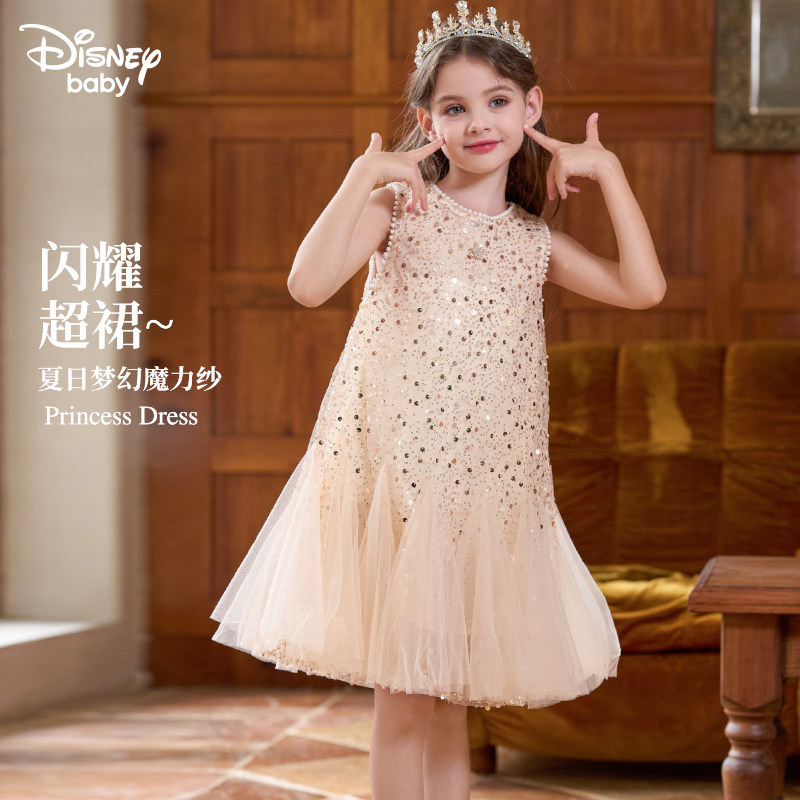 迪士尼童装 洋气艾莎女孩裙子儿童生日连衣裙 女童美人鱼公主裙夏季由
