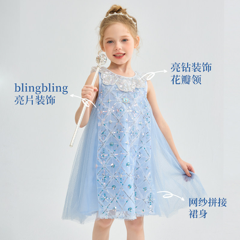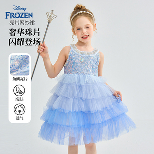 迪士尼童装 洋气艾莎女孩裙子儿童生日连衣裙 女童美人鱼公主裙夏季