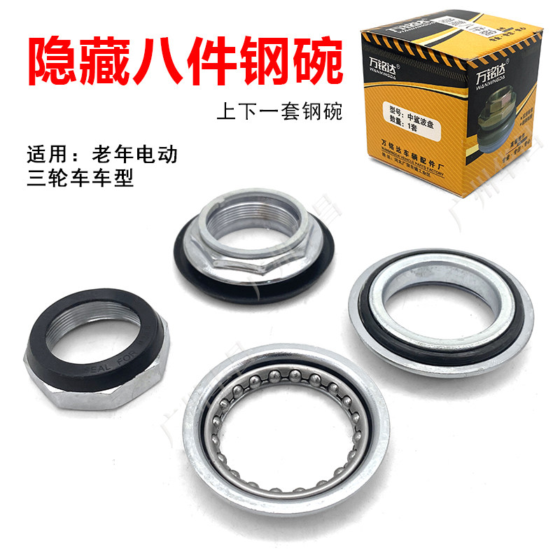 为您提供商品三轮车方向轴承28.6龙头隐藏八件碗 休闲电动三轮车前叉钢碗简易款的详细介绍,