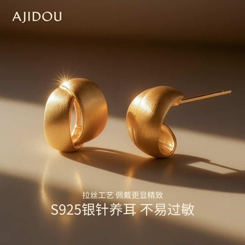 AJIDOU阿吉豆小金豆耳钉女S925银轻奢高级感耳扣耳环欧美风耳饰品