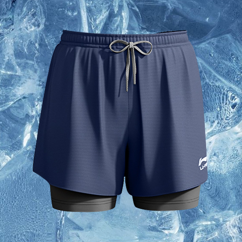 速干田径马拉松训练健身运动三分裤 内衬假两件 男夏季 李宁跑步短裤