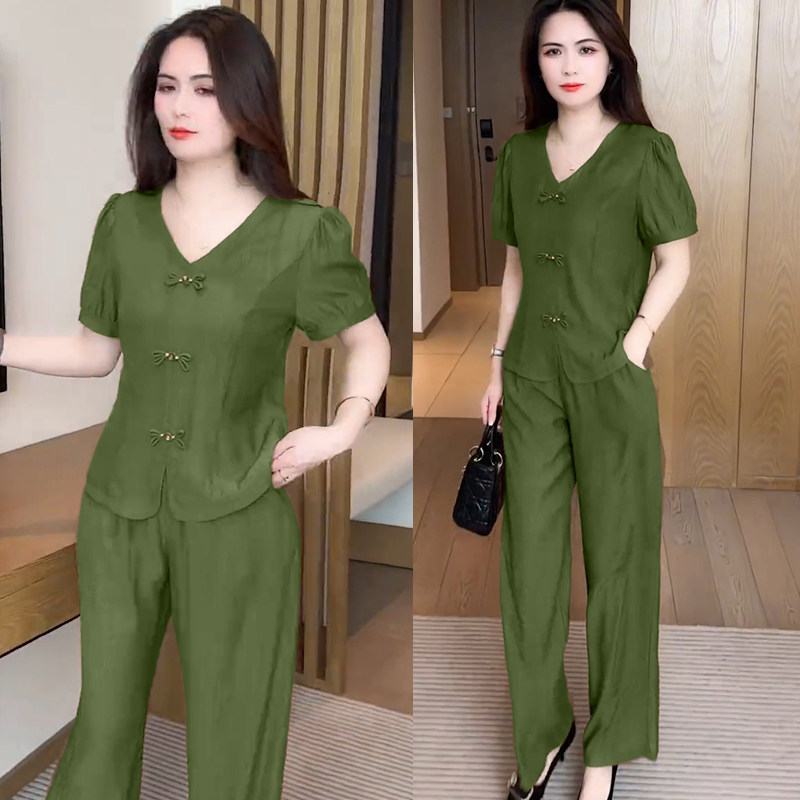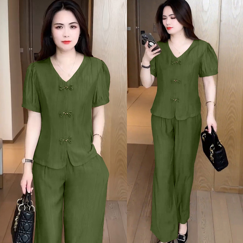时髦洋气大码 胖MM新中式 减龄上衣两件套 新款 女夏季 国风时尚 套装