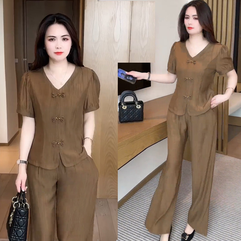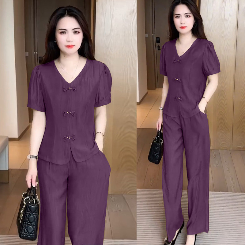 为您提供商品时髦洋气大码 胖MM新中式 减龄上衣两件套 新款 女夏季 国风时尚 套装的详细介绍,