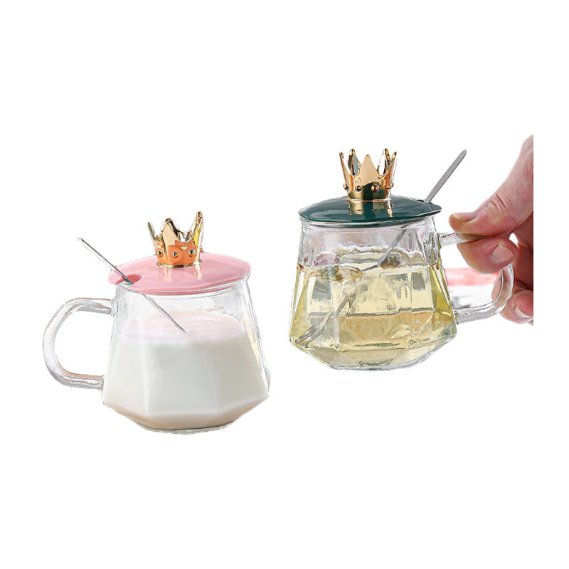 玻璃杯ins风可爱水杯女生高颜值带盖勺办公室咖啡早餐小熊杯子