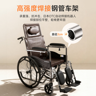鱼跃轮椅车折叠轻便老人专用多功能轻型瘫痪代步车手动推车H056C