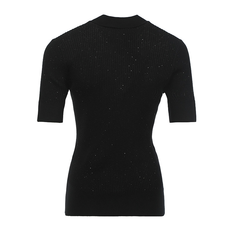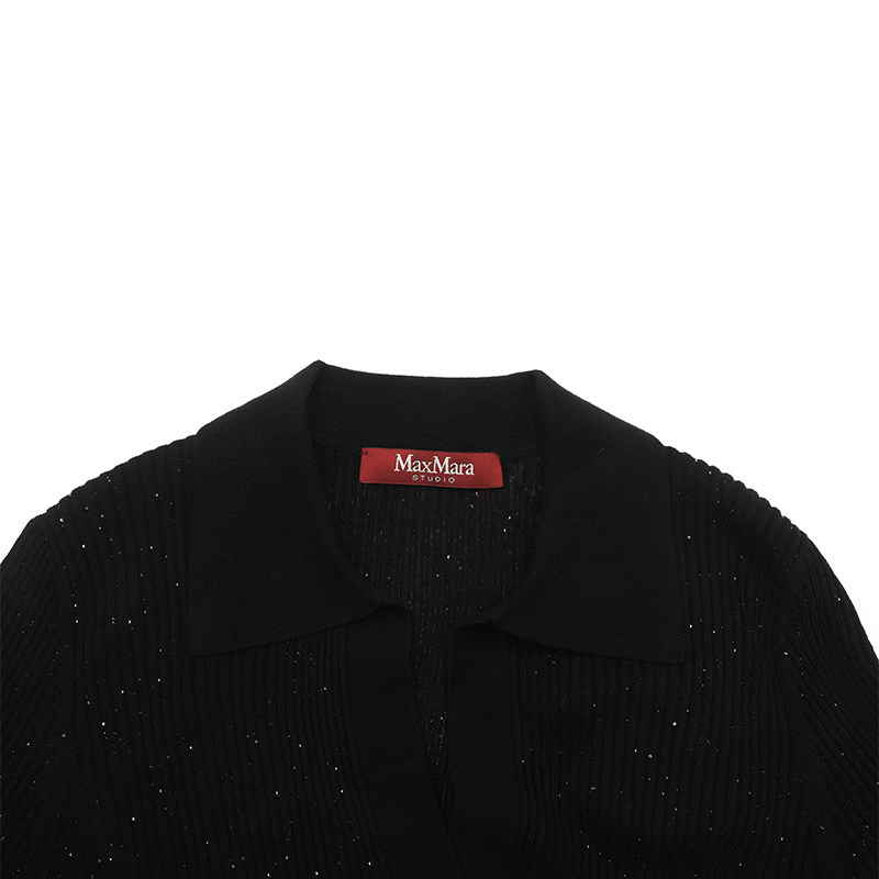 修身 自营 MaxMara女士纯色桑蚕丝羊毛老钱风时尚 针织衫 V字短袖