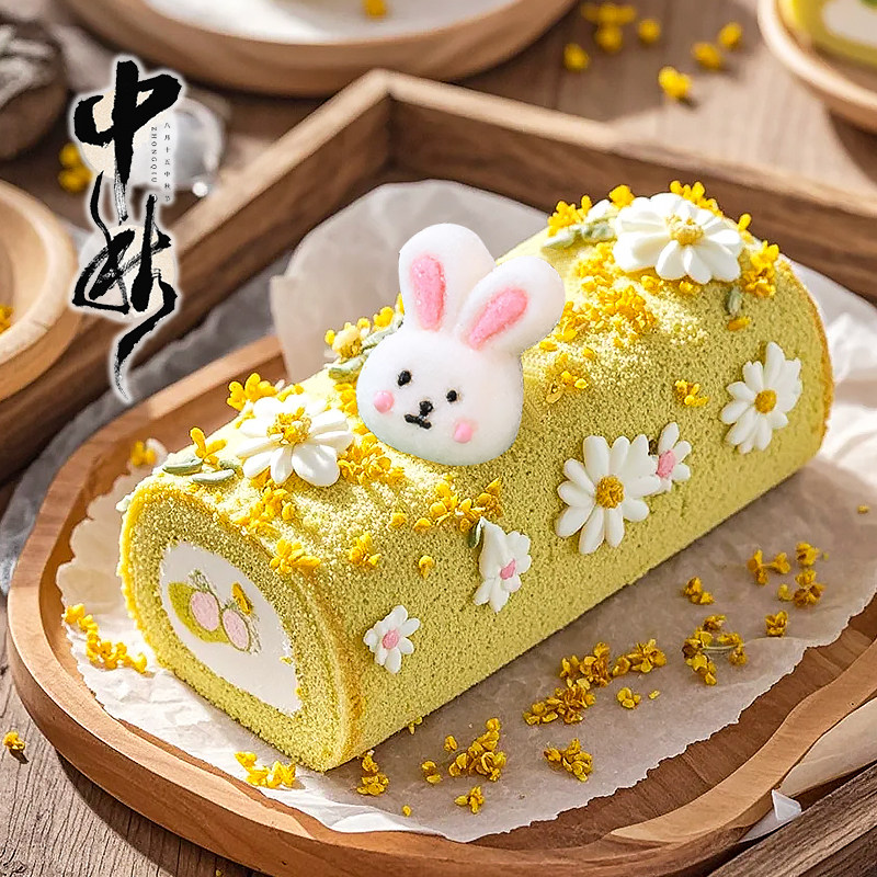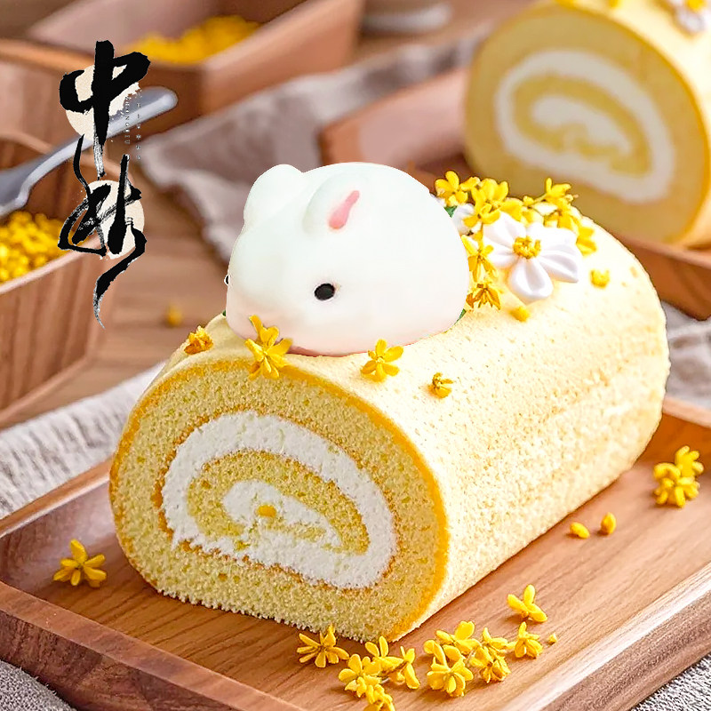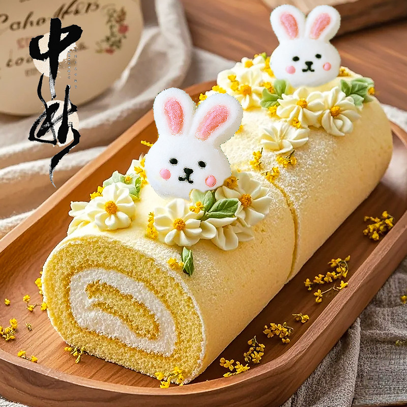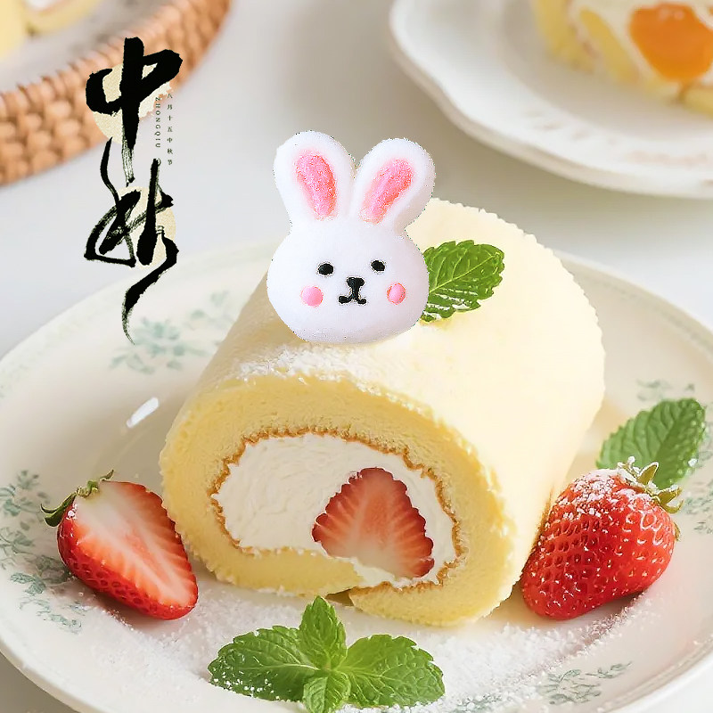 中秋节蛋糕装 扮 饰兔子棉花糖摆件卡通小白兔软糖瑞士卷甜品烘焙装由