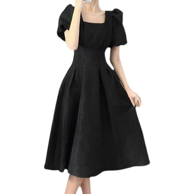 6615 初恋白色大摆长裙子夏季 女装 方领收腰显瘦气质连衣裙子 法式