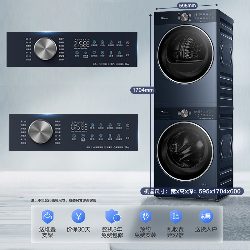 小天鹅小乌梅3.0洗烘套装 12KG洗衣机热泵烘干机E40 纯平全嵌