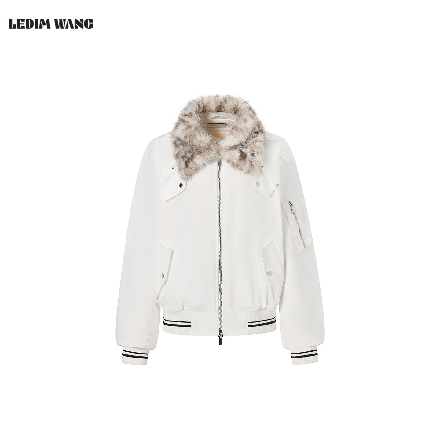 为您提供商品LEDIM 毛绒内胆女白色上衣 WANG动物纹毛领皮草棒球外套25秋冬新款的详细介绍,