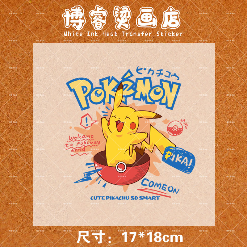 饰贴T恤卫衣新款 图案热转印白墨烫画贴 印花辅料装 卡通皮卡丘服装