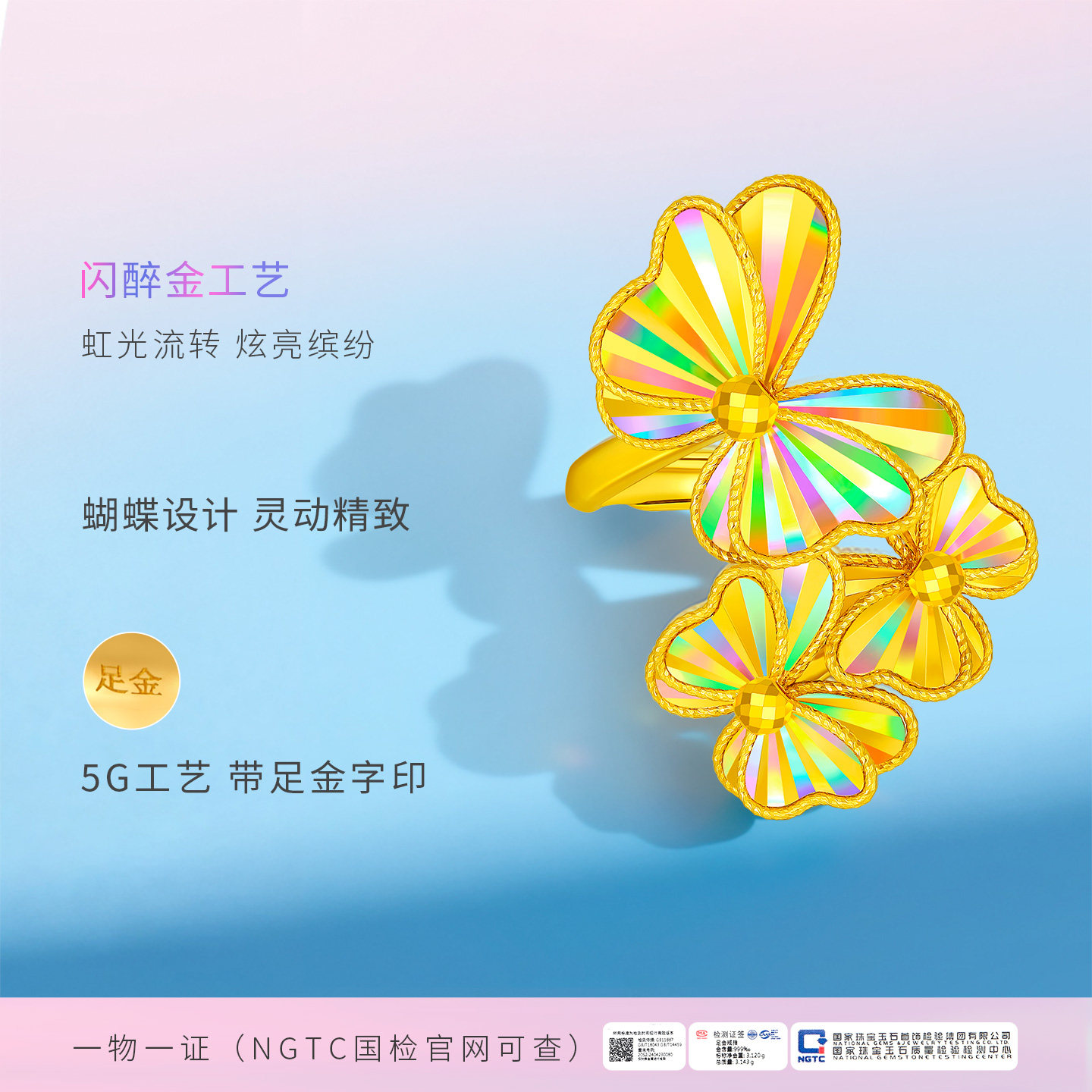 为您提供商品足金戒指生日礼物送老婆蝴蝶金指环 金至尊闪醉金破茧黄金戒指新款的详细介绍,