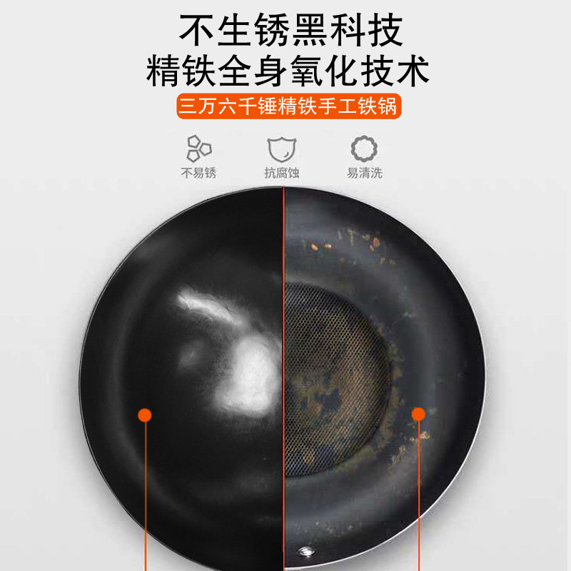 舌尖三万六千锤手工章丘锻打铁锅不粘锅锻打家用炒锅无涂层炒勺瓢