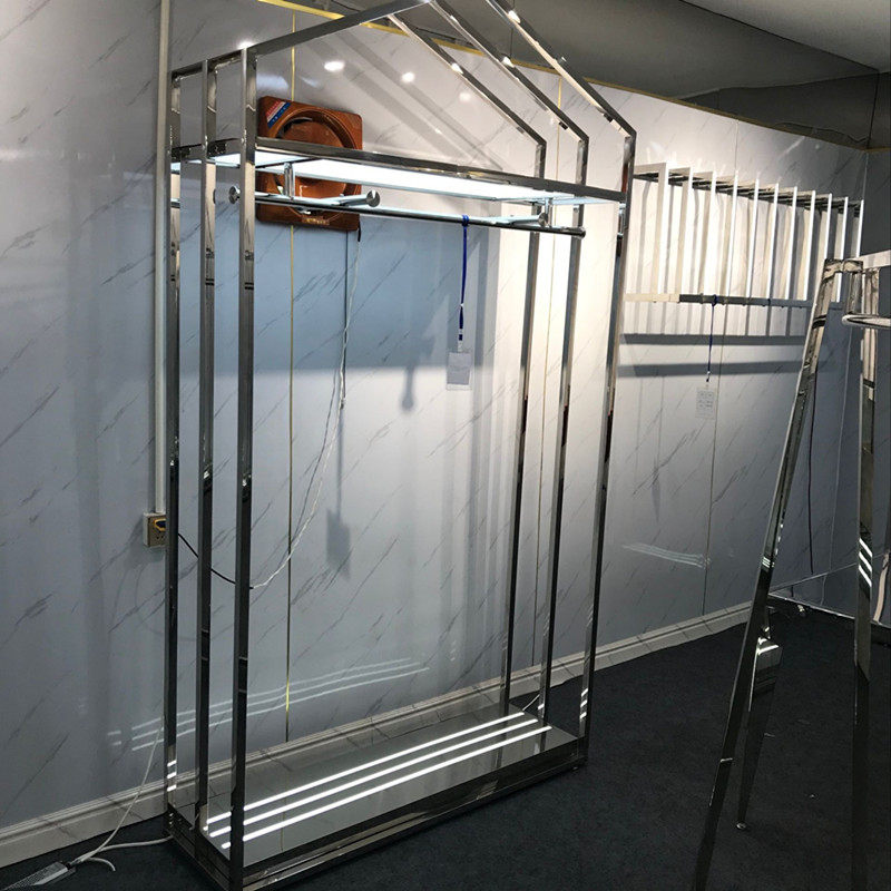 为您提供商品带灯发光展示架网红男女装 中岛不锈钢挂衣服架子 店货架落地式 服装的详细介绍,