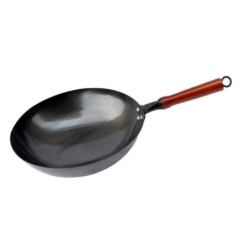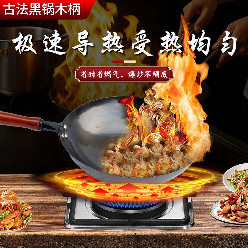 章丘现货家用炒锅黑锅炒菜手工铁锅轻便无涂层不粘锅古法黑锅木柄