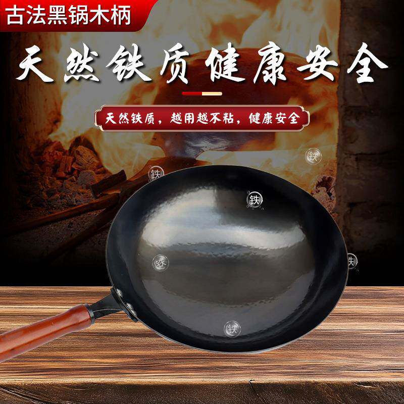 为您提供商品章丘现货家用炒锅黑锅炒菜手工铁锅轻便无涂层不粘锅古法黑锅木柄的详细介绍,