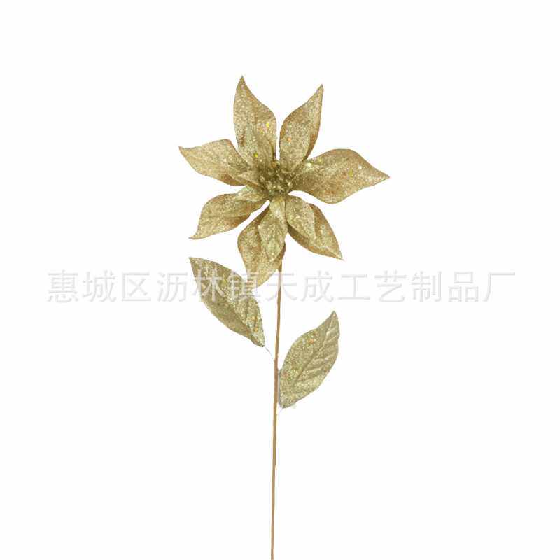 亚马逊圣诞节仿真花圣诞单支欧美家居装 饰品 饰尤加利叶圣诞绢花装