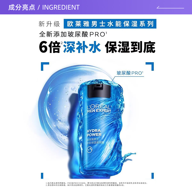 欧莱雅男士 L'oreal 自营 补水 滋润乳22ml 滋润保湿 水能保湿