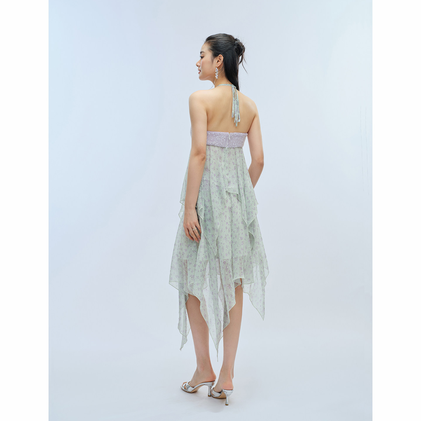 柔瓣印日 亮片印花雪纺绑带立体花朵背心半裙套装 TheChosen由