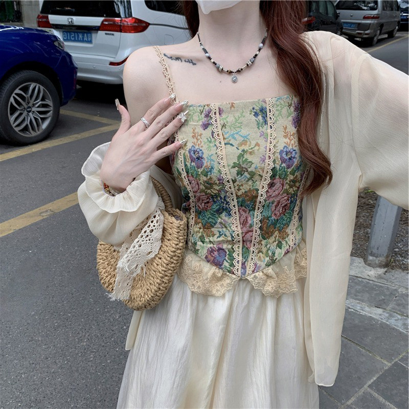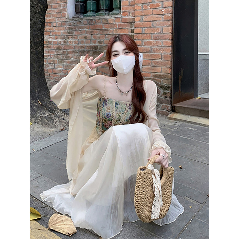 云南旅游穿搭女装 吊带半身长裙三件套装 裙子夏季 民族风连衣裙 开衫