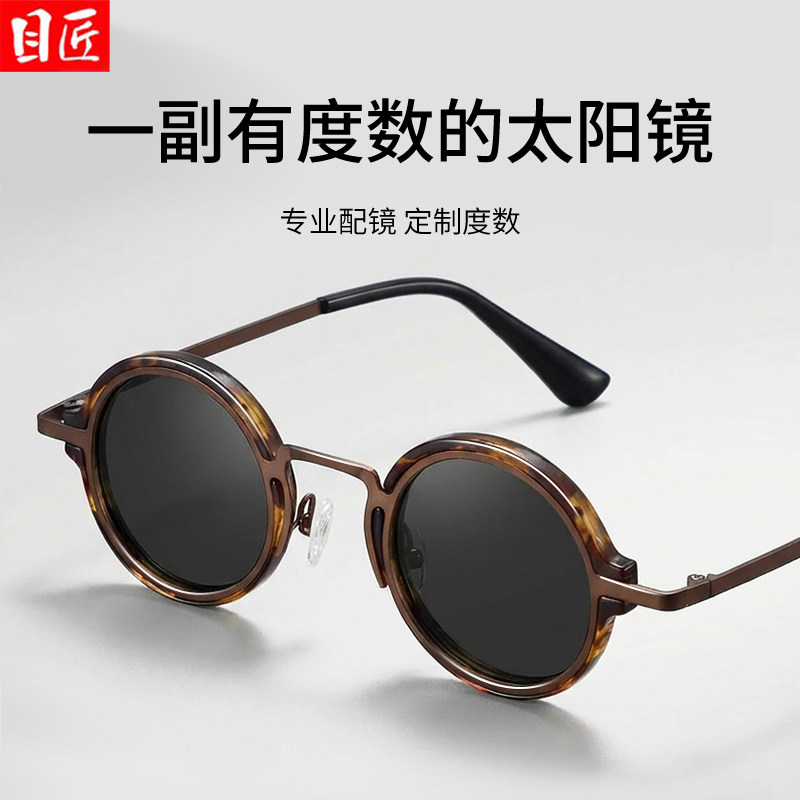 复古玳瑁色小圆框近视墨镜男款 圆形偏光太阳眼镜 可配有度数带男士由