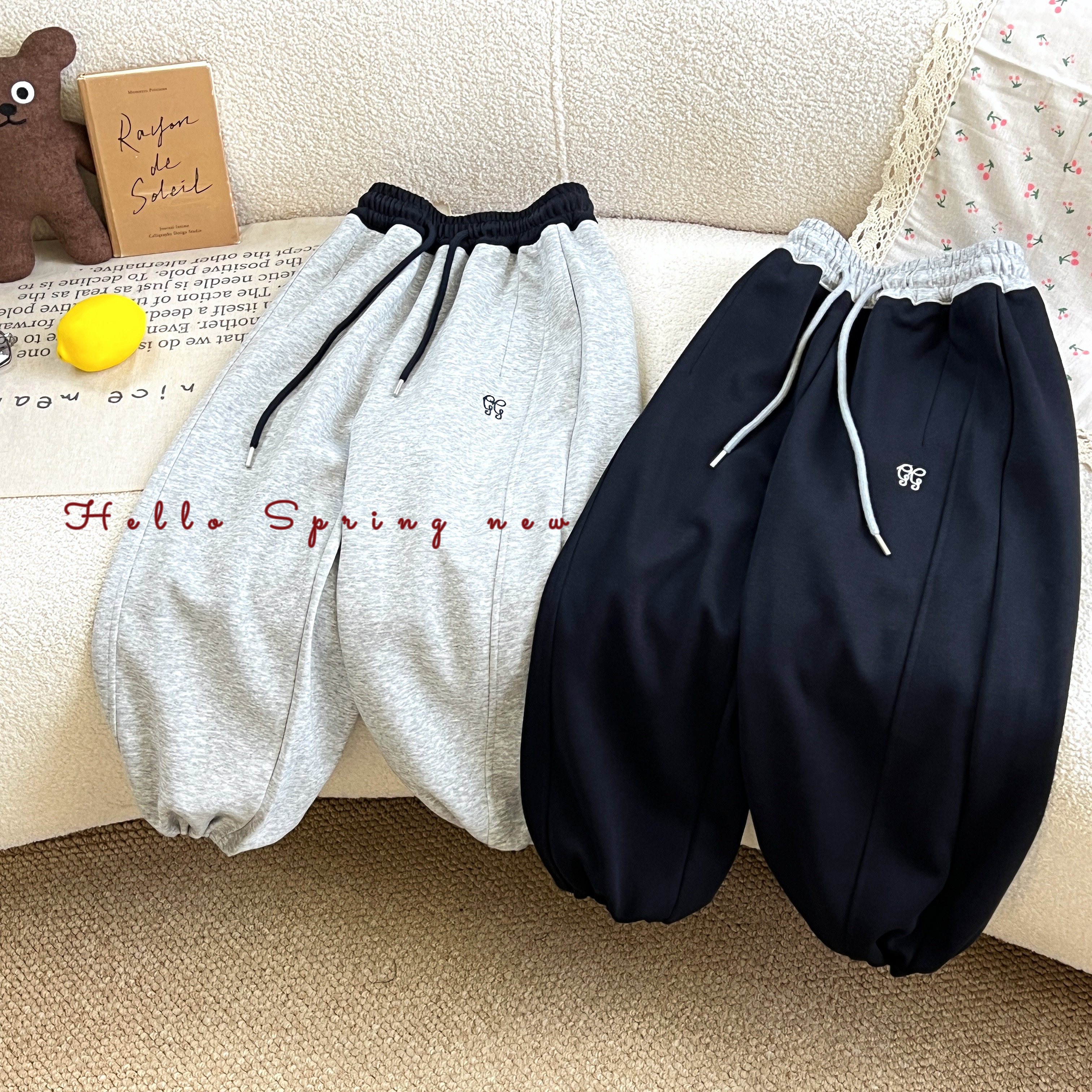 亲子春款 刺绣拼色腰运动裤 880386由