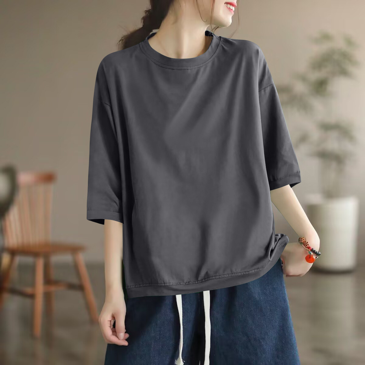 为您提供商品专柜品牌出口纯棉100%七分袖 时尚 高级感打底衫 T恤上衣女春夏新品的详细介绍,