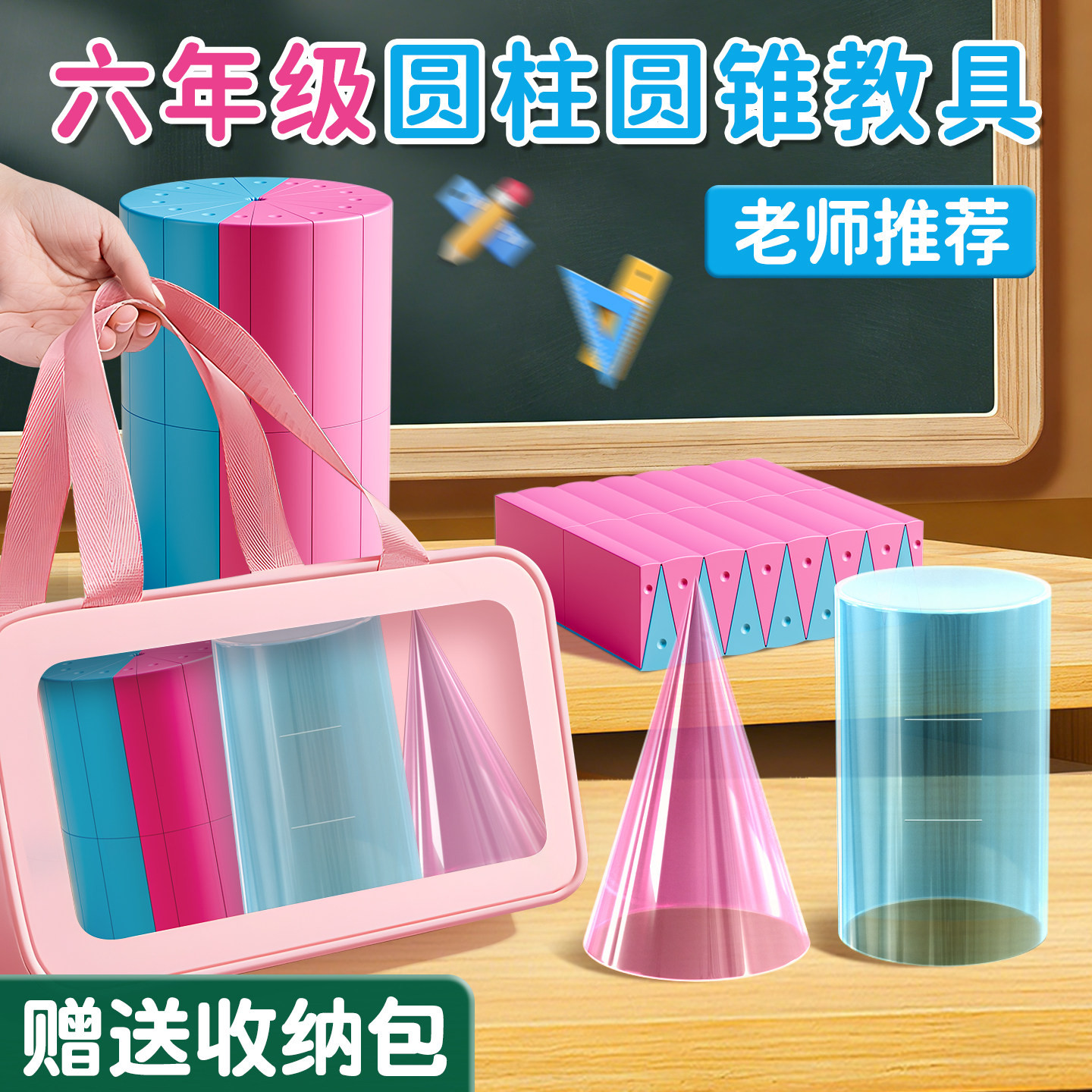 六年级特大号教师用数学公式 推导模型收纳包 几何图形表面积切面展开6合1演示套装 圆柱圆锥体积教具2026新版