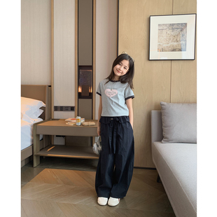 裤 女大童韩系花边伞兵裤 2026春夏新款 青少年休闲弯刀工装 学生长裤