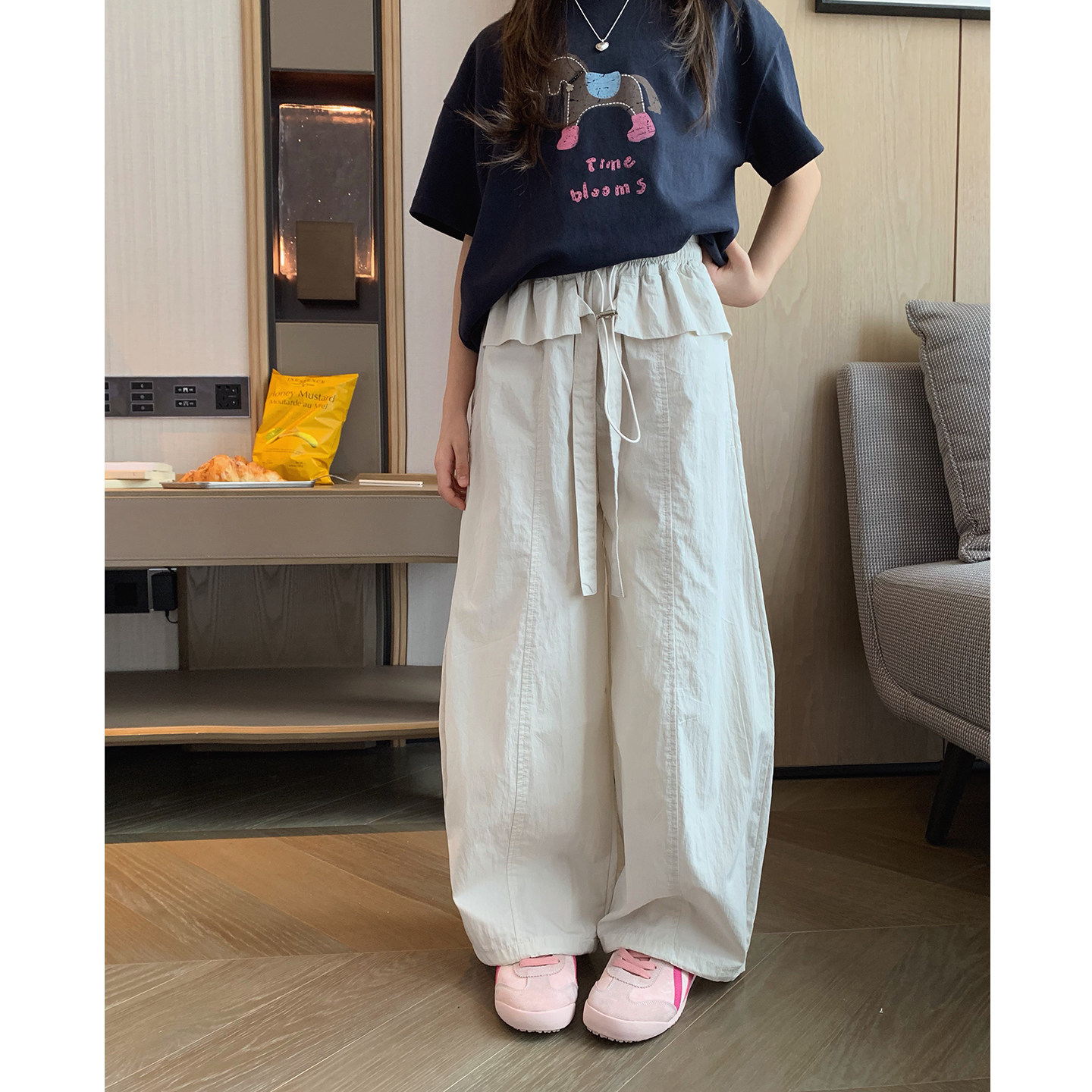 裤 女大童韩系花边伞兵裤 2026春夏新款 青少年休闲弯刀工装 学生长裤由