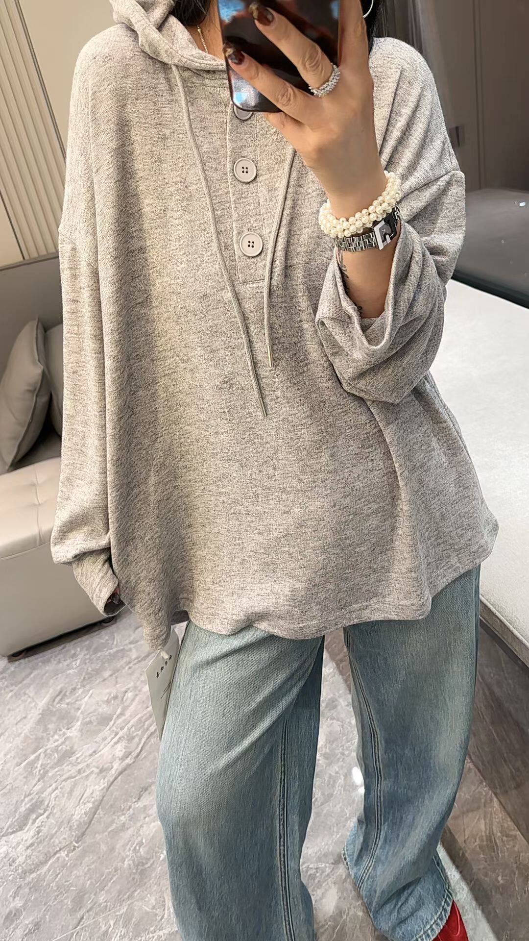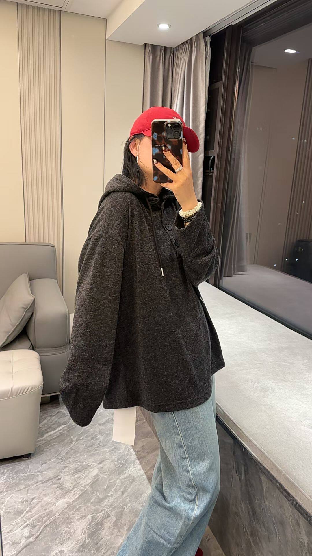 薄款 反季 清仓减龄连帽卫衣女羊绒衫 秋冬毛针织衫 宽松外穿套头帽衫