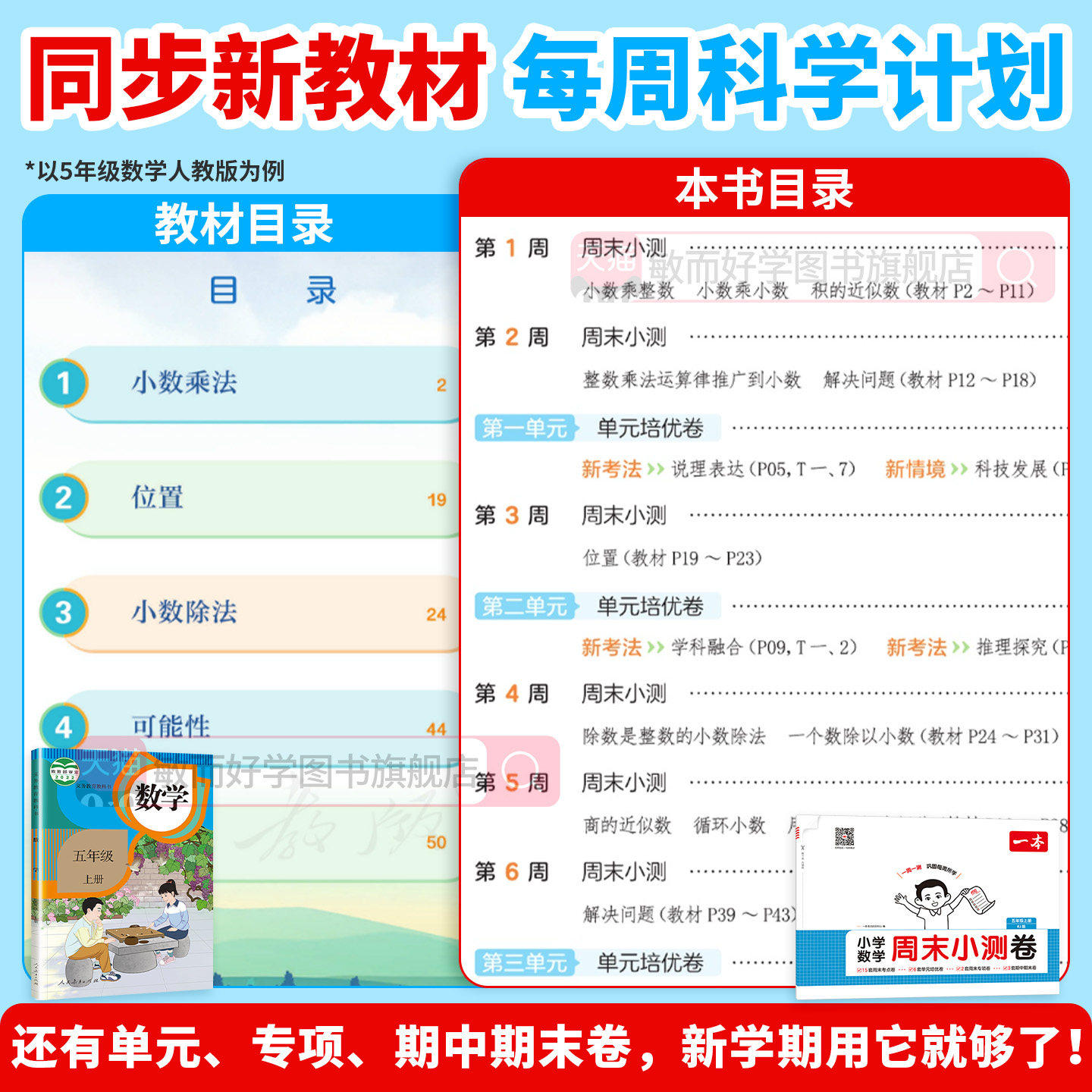 一本周末小测卷小学生一二年级三四年级五六年级上册下册语文数学英语人教版 期末冲刺总复习真题试卷子周末基础 北师大苏教全套单元