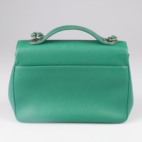 「9.0新」CHANEL BUSINESS手柄祖母绿荔枝皮中号斜挎包 香奈儿
