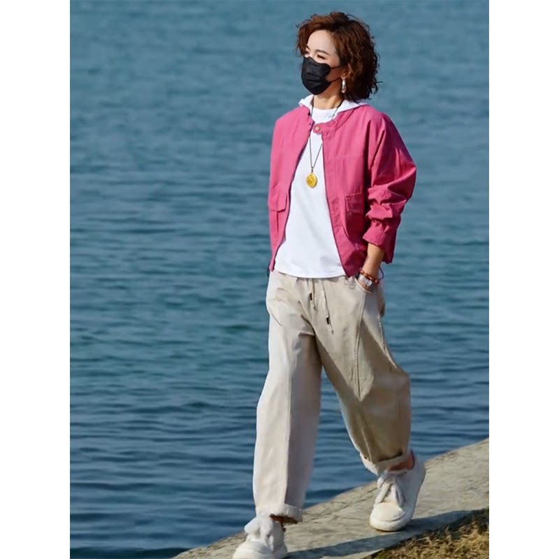 新款 女春季 休闲洋气三件套装 打底衫 哈伦裤 宽松显瘦立领外套 时尚由