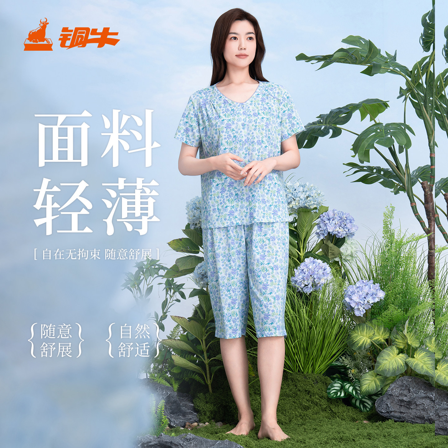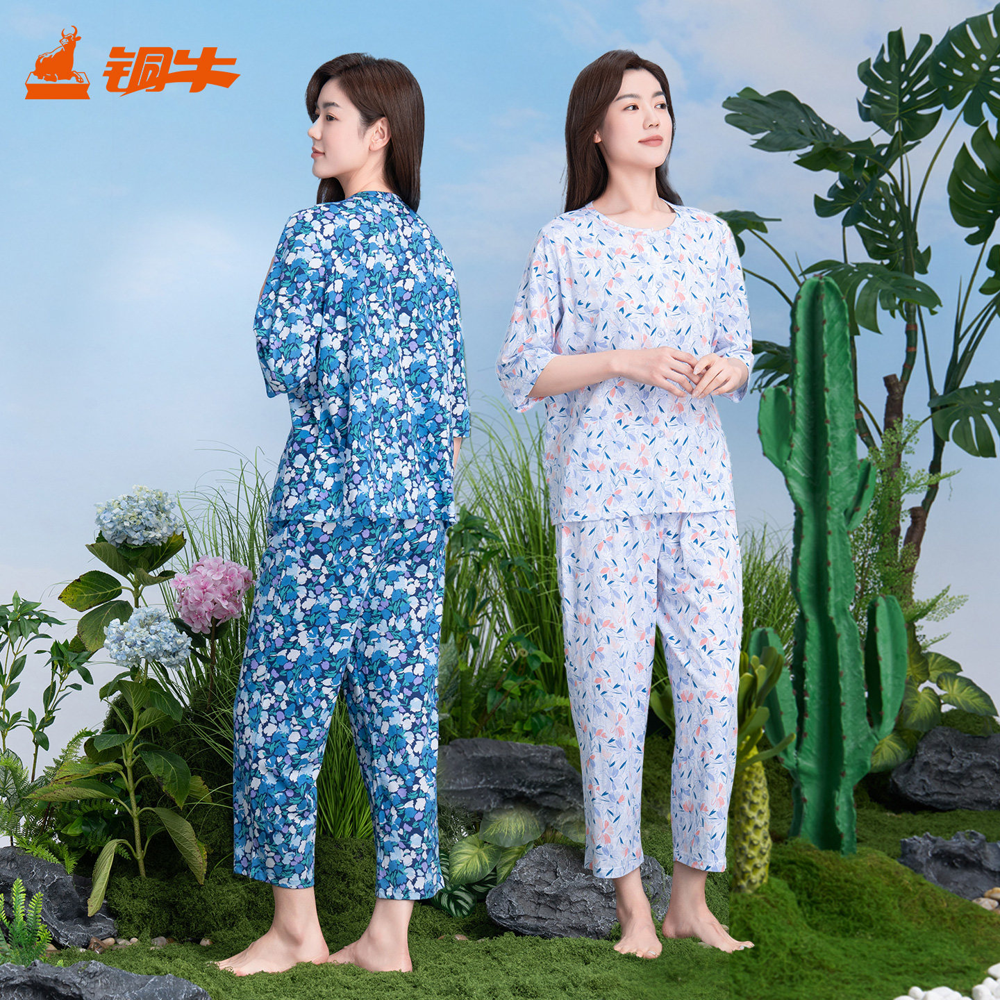睡衣 铜牛纯棉汗布短袖 六分袖 背心春夏印花家居女衫 单件CJ054 睡裤