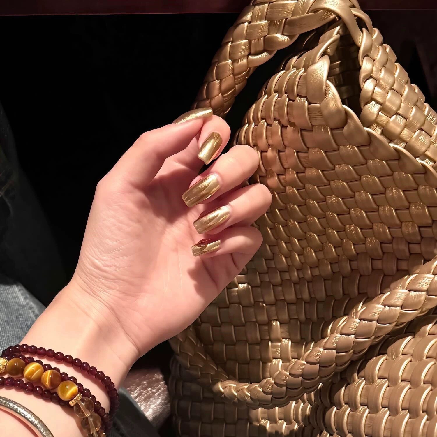 高级感魔镜金色纯手工穿戴甲欧美中长款 金属 高定辣妹美甲贴片个性由