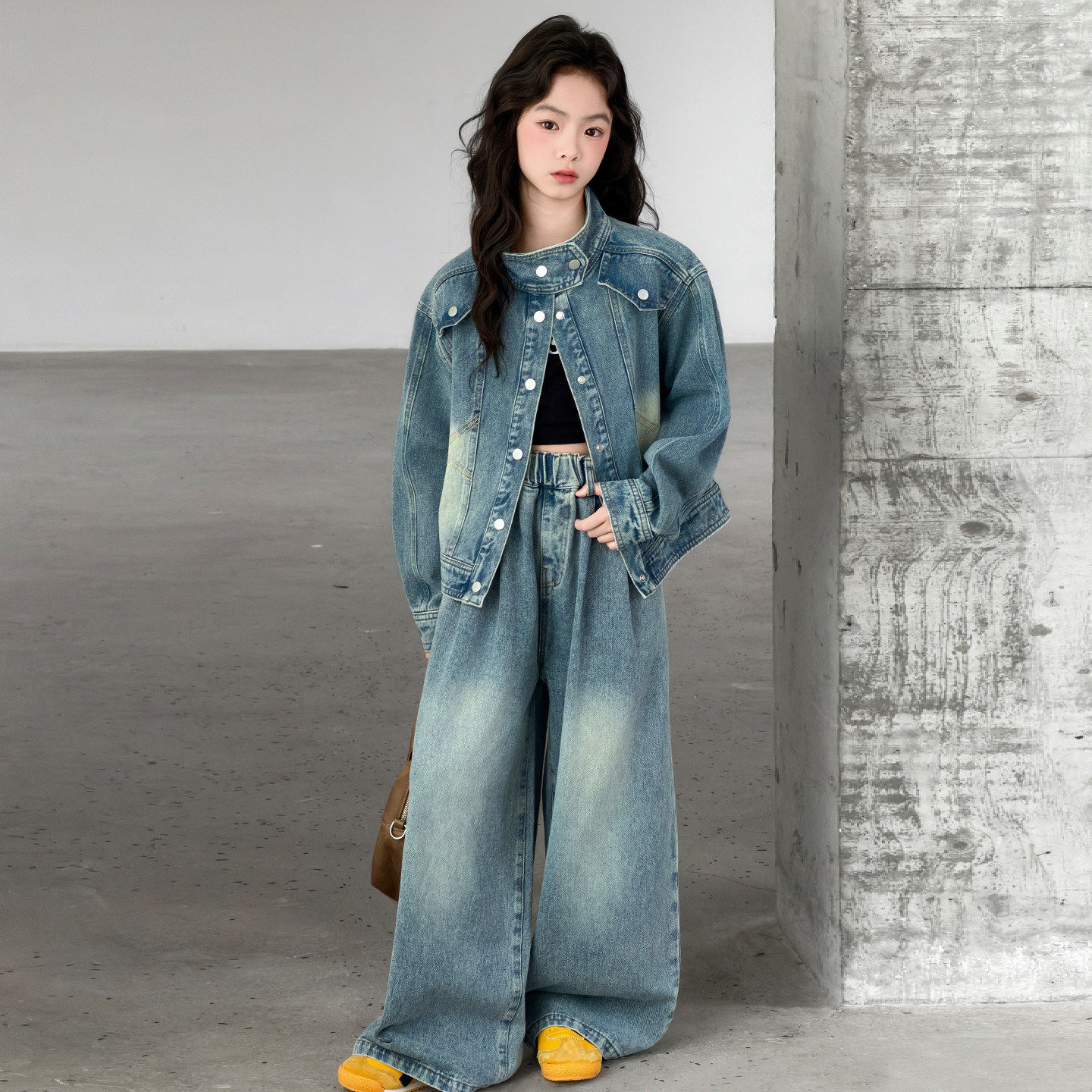 大童牛仔童装 牛仔春秋季 儿童2026套装 外套时髦洋气女童两件套 新款