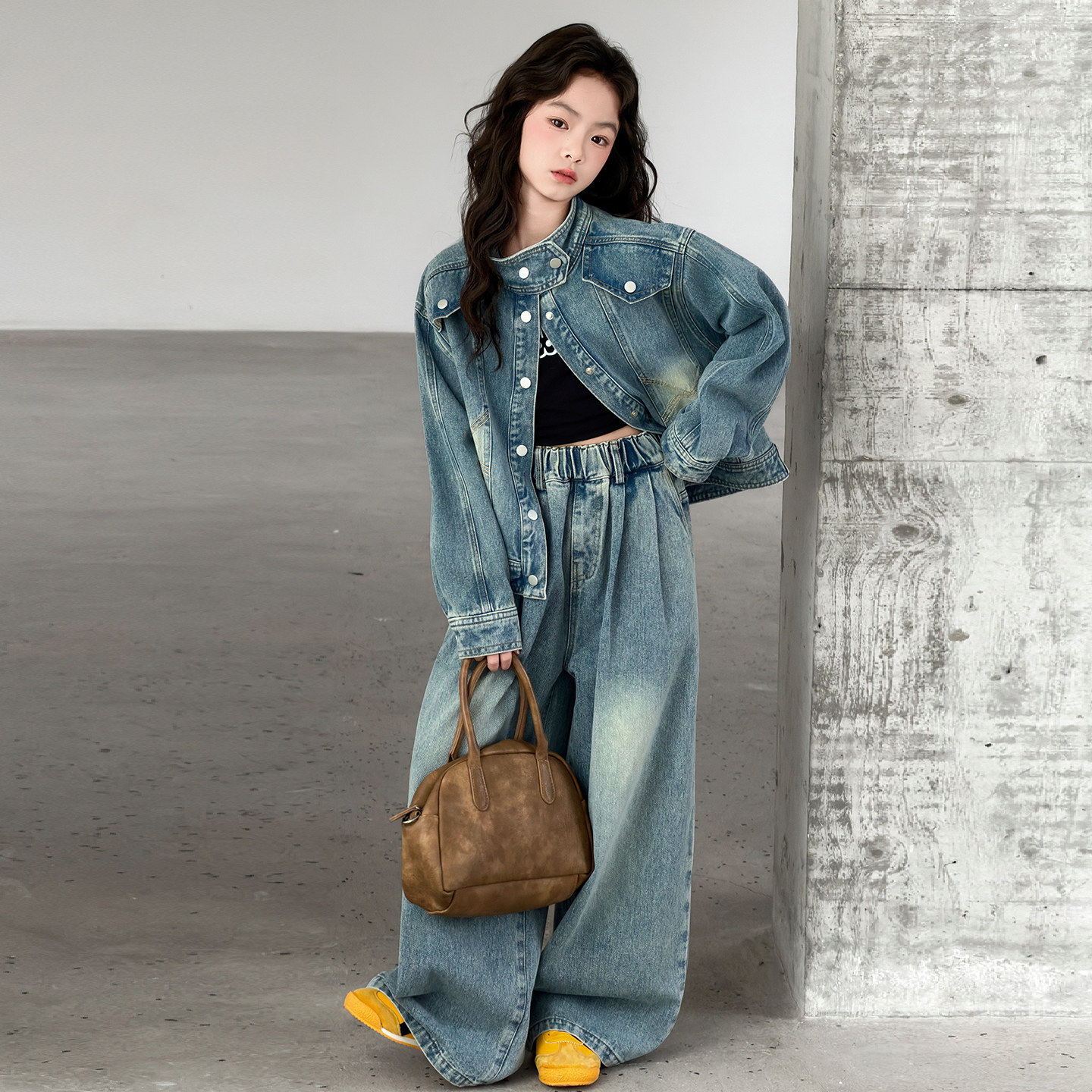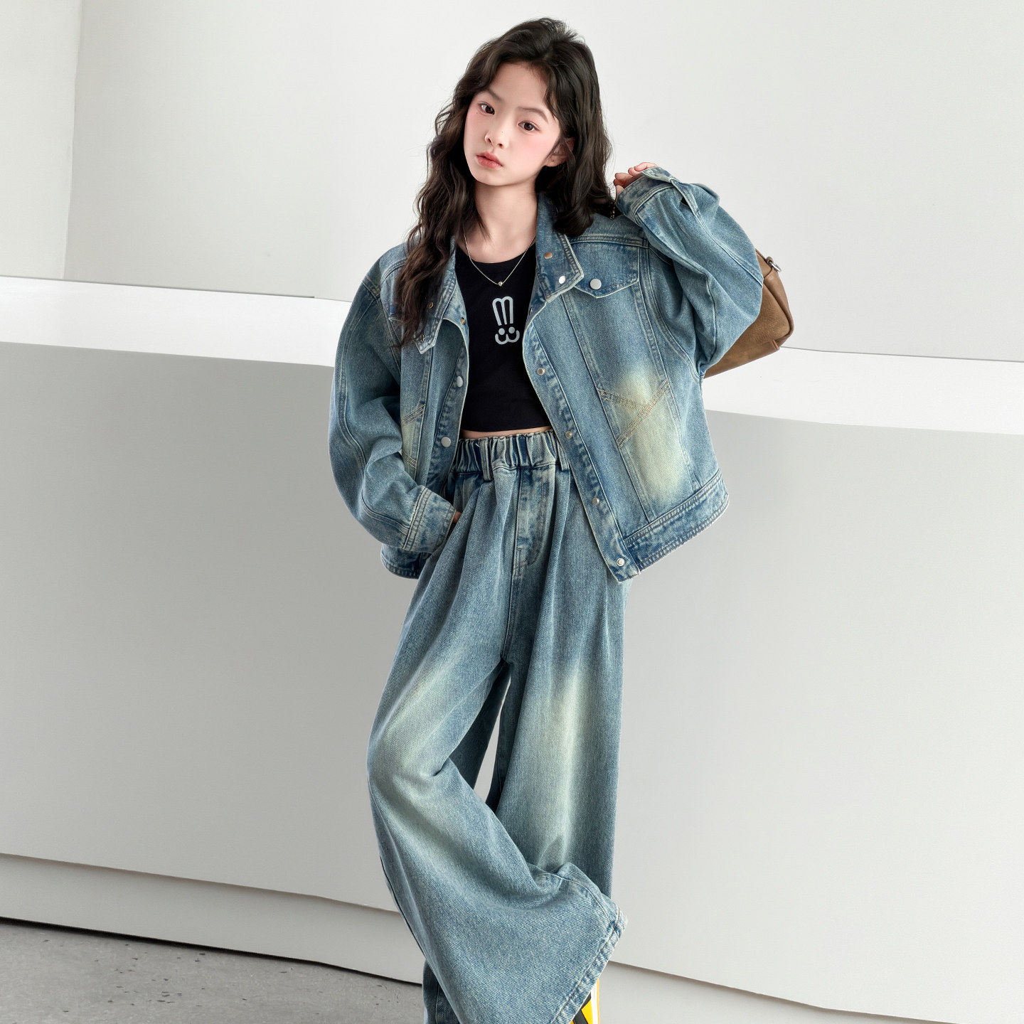 为您提供商品大童牛仔童装 牛仔春秋季 儿童2026套装 外套时髦洋气女童两件套 新款的详细介绍,